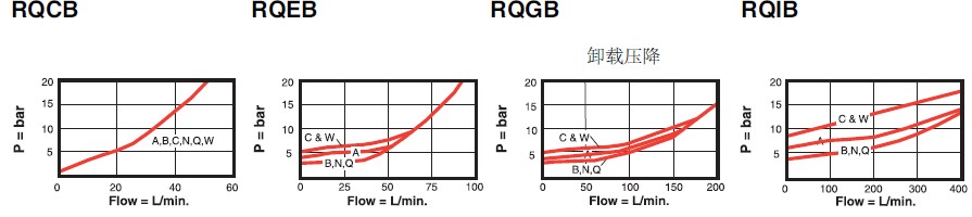 内漏量于24 cSt=RQCB,RQEB:30cc/min。 at 70bar RQGB:49.2 cc/min at 70bar, RQIB:65.6 cc/min at 70bar RQIB:81.9 cc/min at 70bar