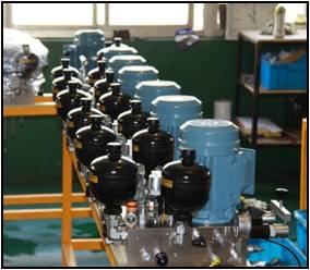 风力发电机组刹车液压系统具有主轴刹车和偏航刹车控制的功能。使风力发电机组在发生故障和紧急情况下,能快速、平稳的制动停机,在运行的情况下使机组保持稳定,不被侧风或绕流影响,此系统由油箱、支架、电机泵组、控制阀块、蓄能器、手动泵、控制仪器、端子箱组成。
