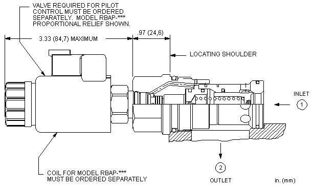 - -8控制类型允许通过T-8A插孔将先导级控制阀直接旋进溢流阀的顶部。这些先导级控制阀需单独采购并包括电比例,电磁,气控先导,液控先导操作。请参照先导级控制阀。