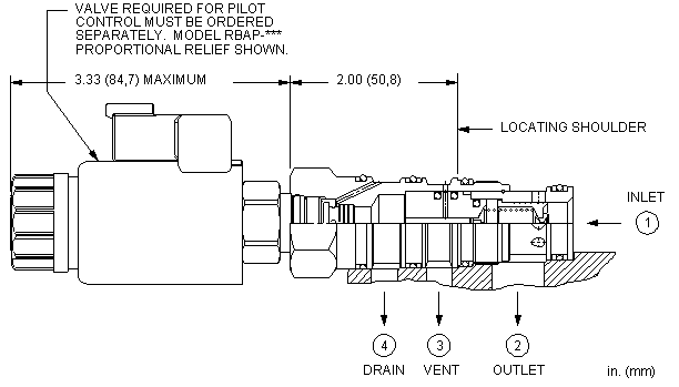 - 口4处的压力直接以1:1的比例增加到阀的设定值上,口4处的压力不能超出5000 psi(350 bar)。