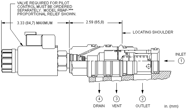 - 口4处的压力直接以1:1的比例增加到阀的设定值上,口4处的压力不能超出5000 psi(350 bar)。