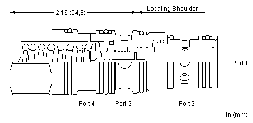此阀是2位2通比例节流阀.口2和口3常闭。口1先导压力抵抗弹簧力会在口2到口3方向上形成一个与口1压力大小成比例的可变节流口。液动力,弹簧力和先导压力平衡下会使此阀随负载压力变化而产生一定程度的自补偿效果。口1和口4的压力直接相互抵抗。