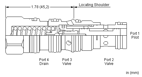 此阀是2位2通比例节流阀.口2和口3常闭。口1先导压力抵抗弹簧力会在口2到口3方向上形成一个与口1压力大小成比例的可变节流口。液动力,弹簧力和先导压力平衡下会使此阀随负载压力变化而产生一定程度的自补偿效果。口1和口4的压力直接相互抵抗。