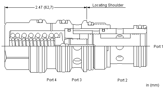 此阀是2位2通比例节流阀.口2和口3常闭。口1先导压力抵抗弹簧力会在口2到口3方向上形成一个与口1压力大小成比例的可变节流口。液动力,弹簧力和先导压力平衡下会使此阀随负载压力变化而产生一定程度的自补偿效果。在弹簧偏置位,口3接通口4泄油。当此阀用在进口流量控制的油路中且流经口3后接平衡阀,泄油特性在此是有益的。当增加口1先导压力,泄油通道将关闭。口1和口4的压力直接相互抵抗。