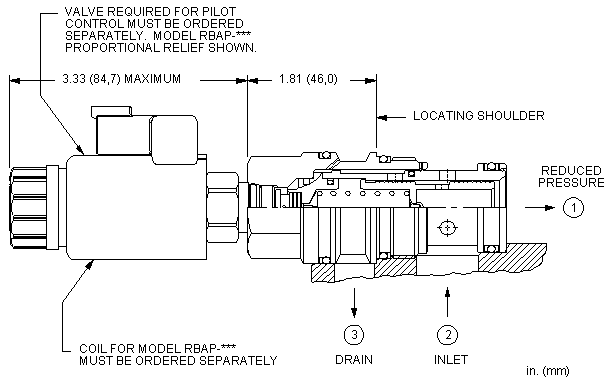 - 口3处的压力直接以1:1的比例增加到阀的设定值上,且压力不能超出5000 psi(350 bar)。