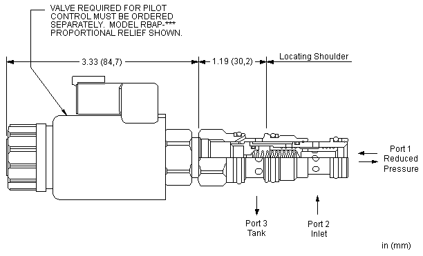 - 口3处的压力直接以1:1的比例增加到阀的设定值上,且压力不能超出3000 psi(210 bar)。