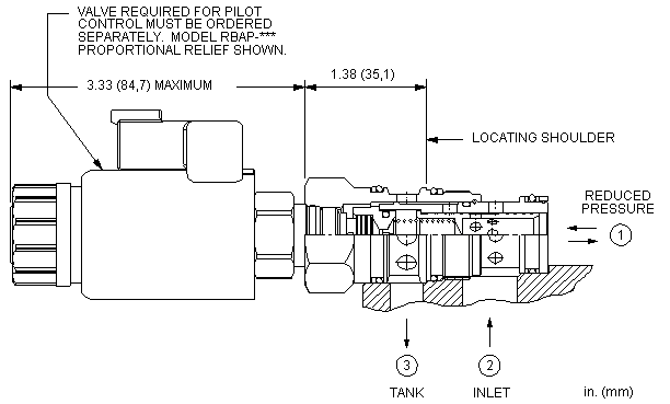 - 口3处的压力直接以1:1的比例增加到阀的设定值上,且压力不能超出3000 psi(210 bar)。