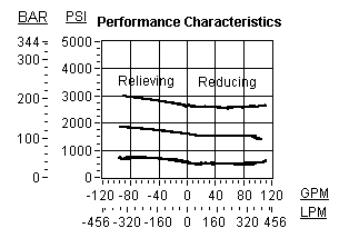 - 进口压力由偏置弹簧决定。D范围弹簧由2000 psi (140 bar)压力降测试,W范围弹簧由5000 psi (350 bar)进口压力测试。