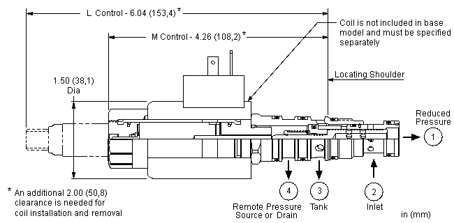 - 外泄口(口4)处的压力直接以1:1的比例增加到阀的设定值上,且压力不能超出3000 psi(210 bar)。