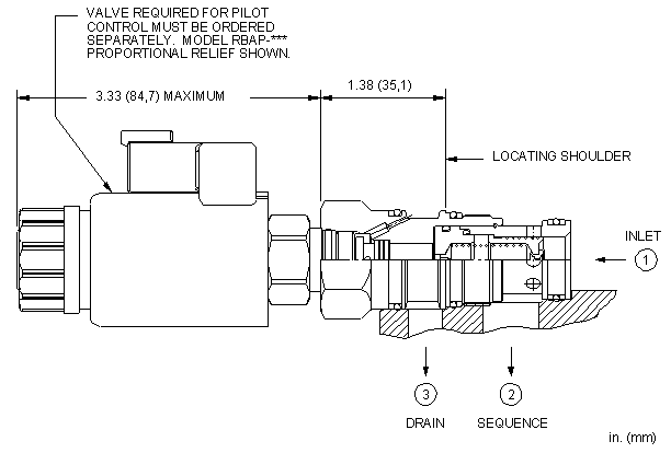 - 口3处的压力直接以1:1的比例增加到阀的设定值上,口3处的压力不能超出5000 psi(350 bar)。