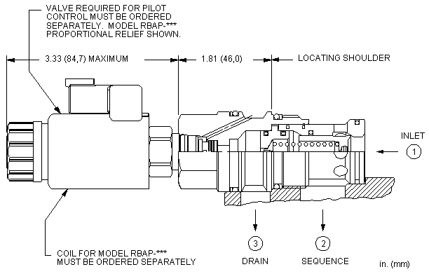 - 口3处的压力直接以1:1的比例增加到阀的设定值上,口3处的压力不能超出5000 psi(350 bar)。