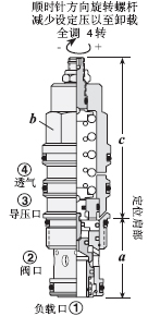 阀的设定压在280bar 时能承受的负载压为215bar.