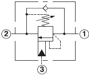 此阀的功能同3口抗衡阀,回座时功能似提塞阀而抗衡调控时如滑栓阀。