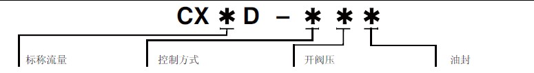 注意:CX*A2口尾入侧出止回阀和CX×D侧入尾出阀使用同一插孔,其形体上是可互换,但流经的方向相反。